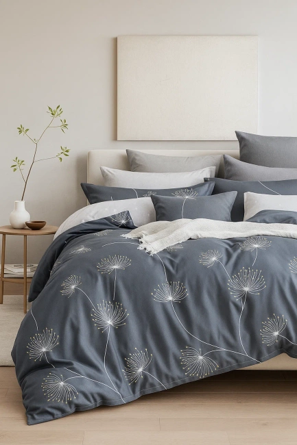 Pościel z falbanką ciemna szara 200x220 3 el.