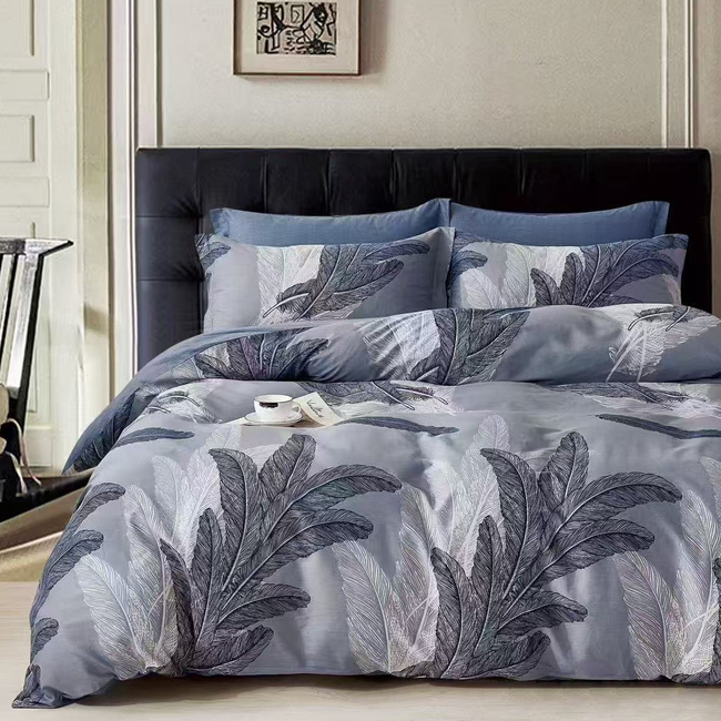 Pościel ciemna szara w liście 200x220 4 el. Marin