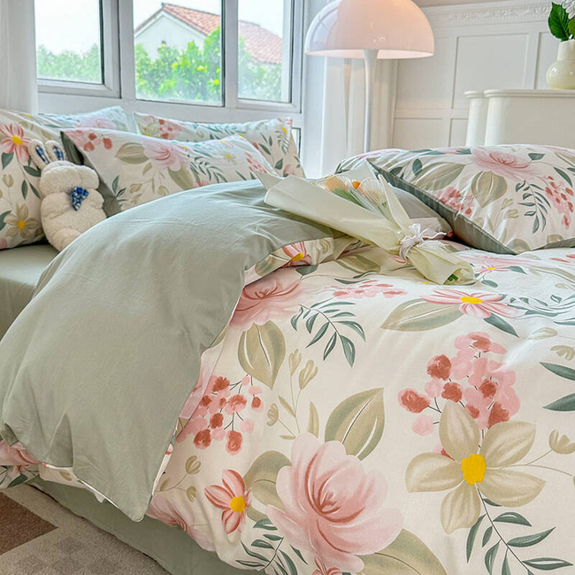 Pościel bawełniana we wzór kwiatów 200x220 4 el. Charlotte