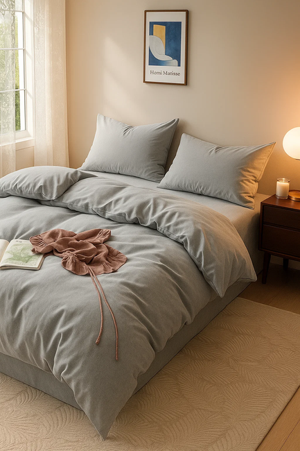 Pościel jednokolorowa gładka 200x220 3 el. jasna szara S002