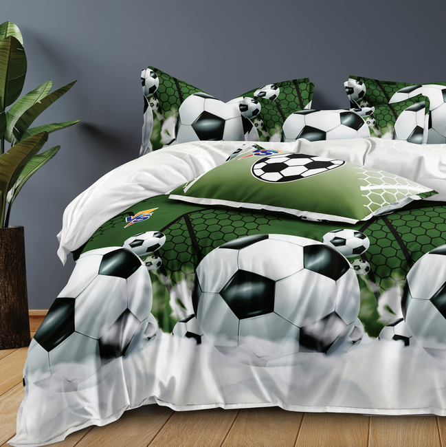 Pościel dziecięca młodzieżowa biało-zielona w piłki 160x200 3 el. nr379