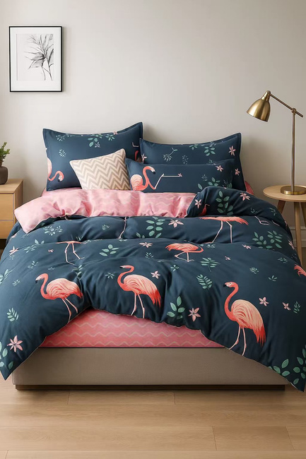 Pościel niebiesko-różowa we flamingi 160x200 4 el. Flaming C-001