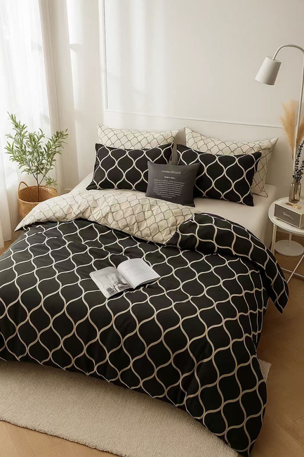 Pościel czarno-beżowa geometryczna 160x200 4 el. Luksus C-013 c-6