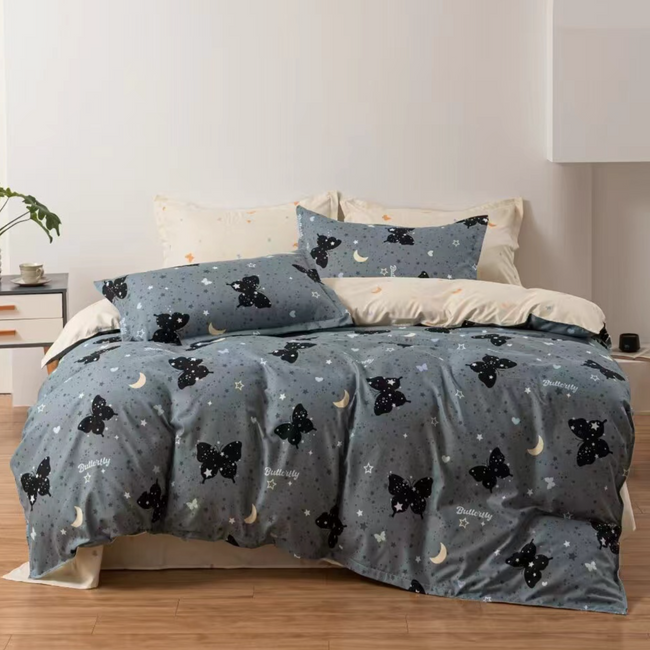 Pościel gładka dwukolorowa 200x220 4 el. z prześcieradłem z gumką grafitowa - kremowa H01