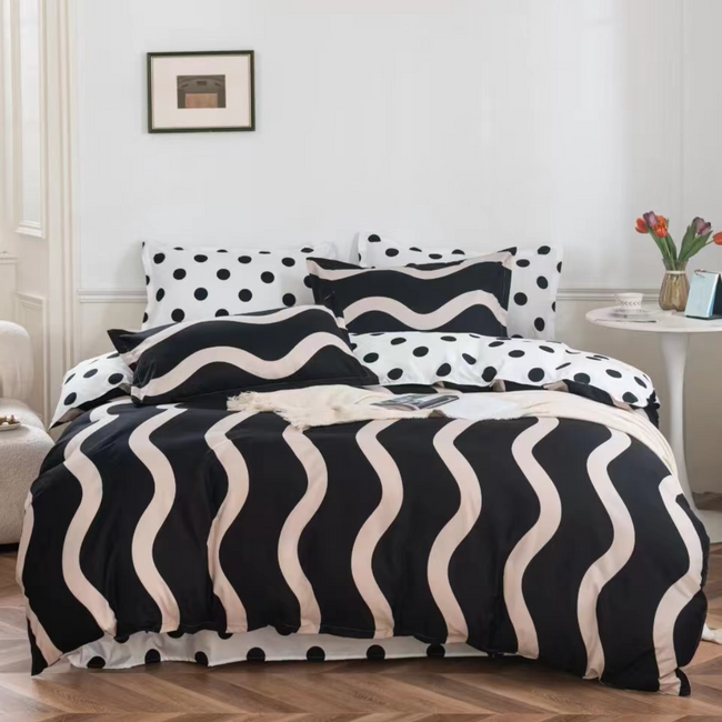 Pościel czarno-biała w gwiazdki 160x200 3 el. Valera C-002