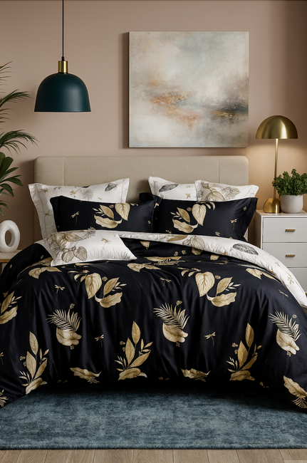 Pościel czarno-biała w piórka 200x220 4 el. Sabinas C-117