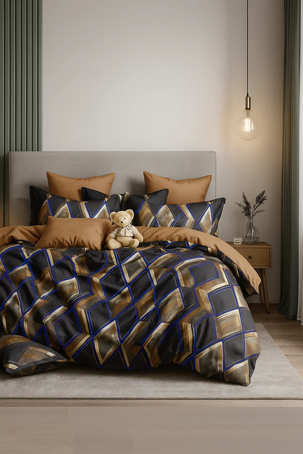 Pościel czarno-brązowa geometryczna 160x200 4 el. z prześcieradłem z gumką Medellin D-142