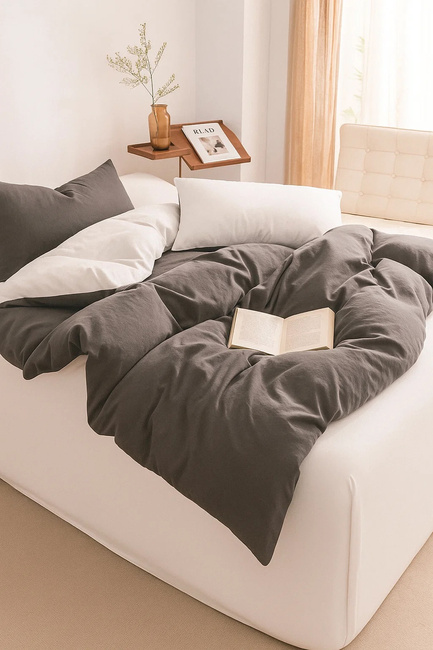 Pościel 160x200 4 el. z prześcieradłem z gumką gładka bez nadruku biała ciemna szara S-13