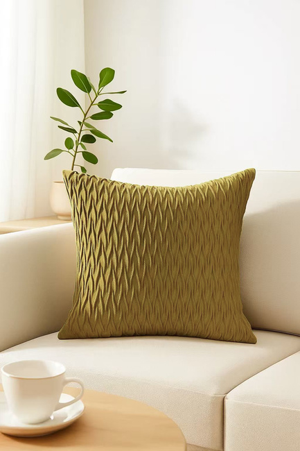 Poszewka na poduszkę dekoracyjna 40x40 musztardowa z falbanką