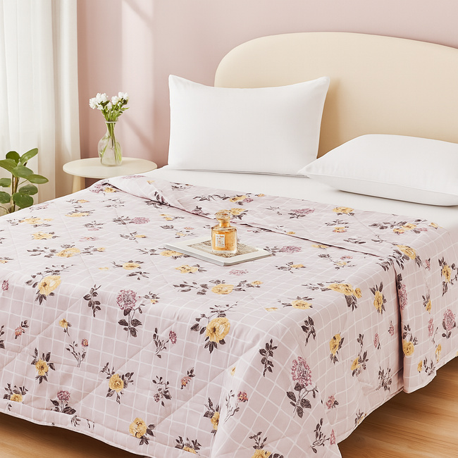 ( ilość produktów: 352 )Kołdra letnia pikowana narzuta w kwiaty różowo-biała 200x220 KH014