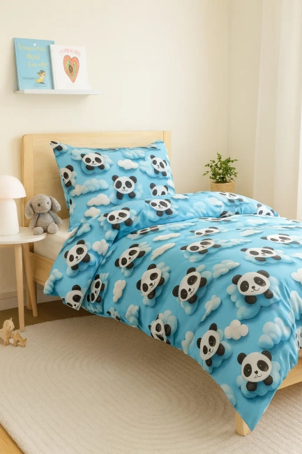 Pościel dziecięca niebieska w pandy 140x200 2 el.