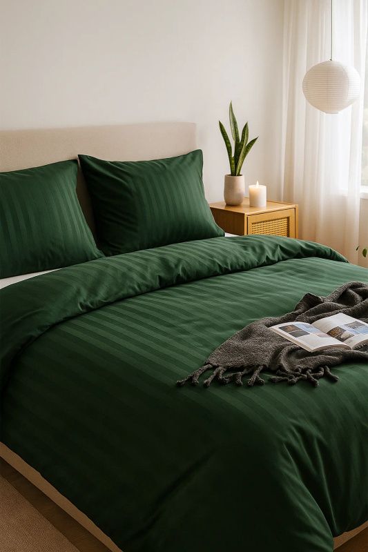 Pościel w pasy zielona 140x200 2 el. Kim Green H-009