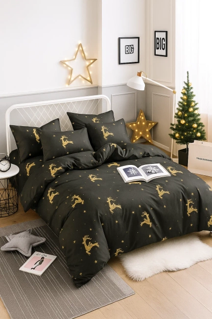 Pościel świąteczna czarna w renifery 140x200 2 el.