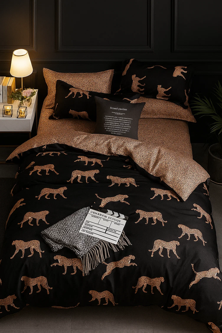 Pościel czarno w panterkę 160x200 4 el. Pantera C-008