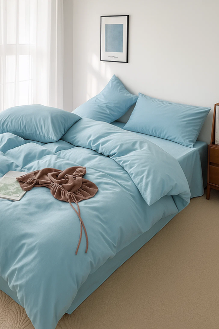 Pościel jednokolorowa gładka 160x200 3 el. błękitna S007