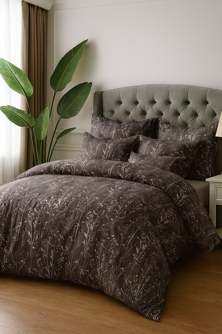 Pościel ciemna szara w liście 180x200 3 el. A109