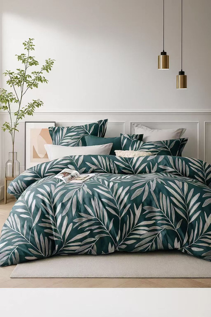 Pościel butelkowa zielona w liście 200x220 4 el. z prześcieradłem z gumką Arenya D-138