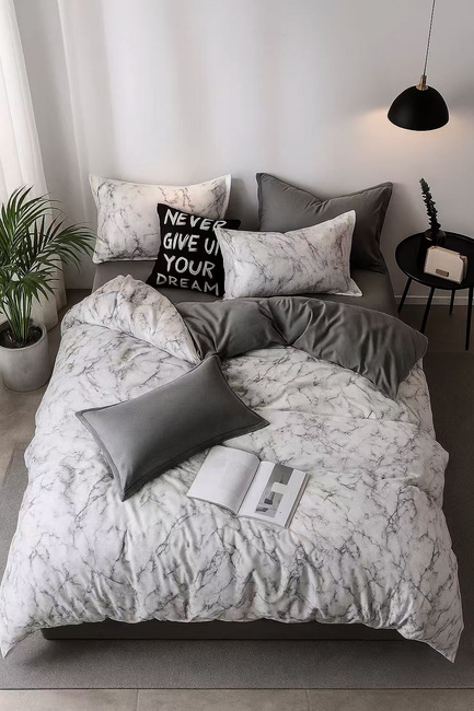 Pościel biało-szara marmurkowa 160x200 4 el. Vigia C-009