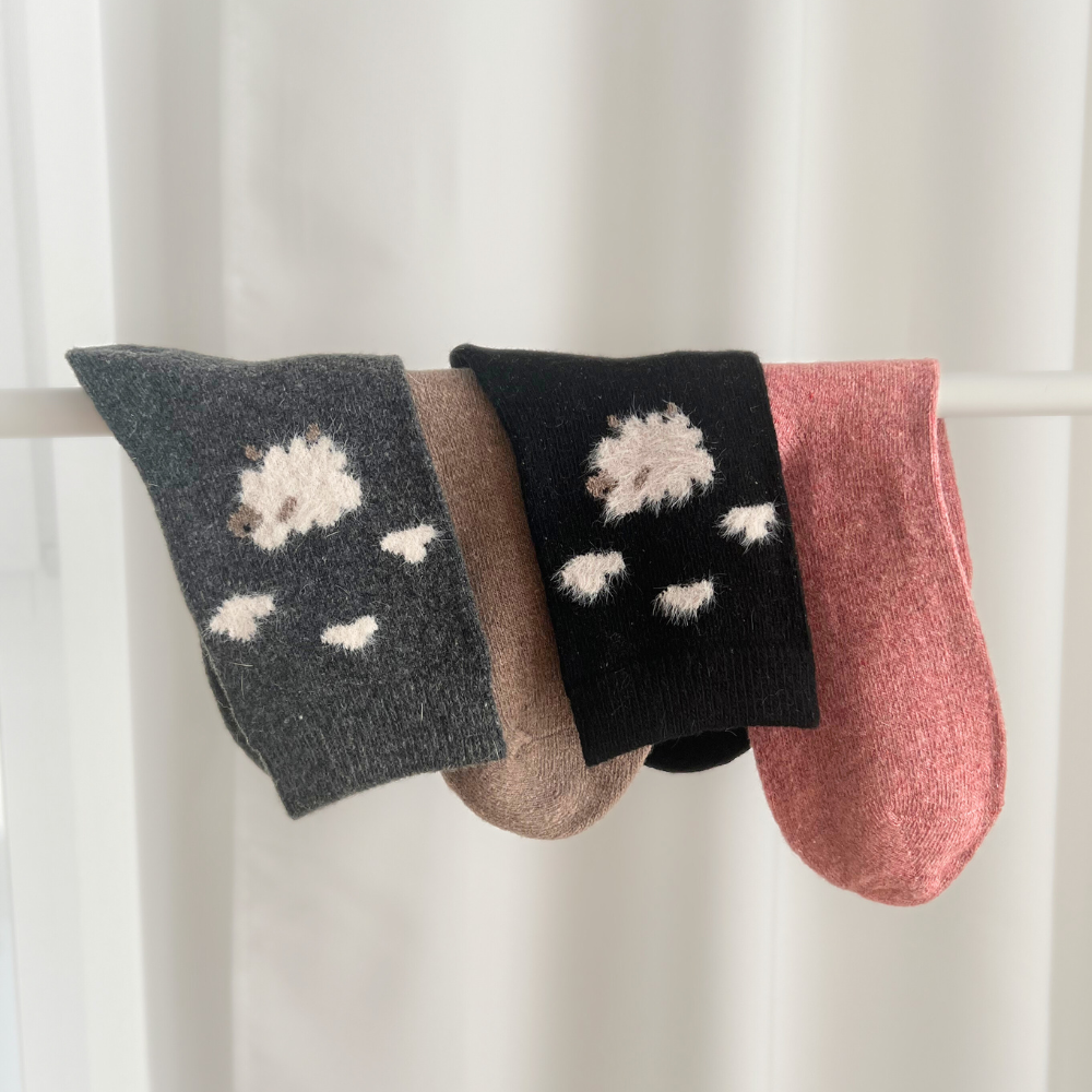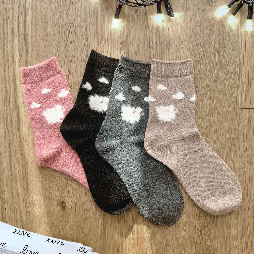 - Skarpety wełniane damskie w odcieniach różu, szarości, beżu i czerni z motywem owiec.. Zestaw zawiera cztery pary. Pomysł na prezent na święta Bożego Narodzenia lub Mikołajki!