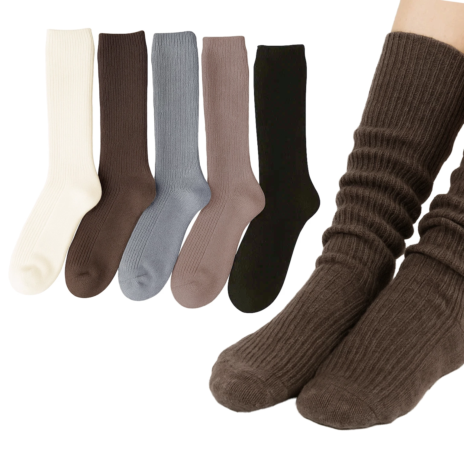 5 par podkolanówek z wełny merynosów – luksus, który otula ciepłem