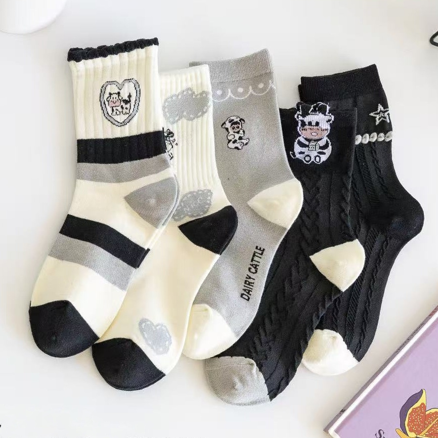 • Skarpetki bawełniane damskie za kostkę ze wzorem w krówki w kolorze czarnym, jasnym szarym, białym. Zestaw zawiera pięć par. Idealne na prezent!