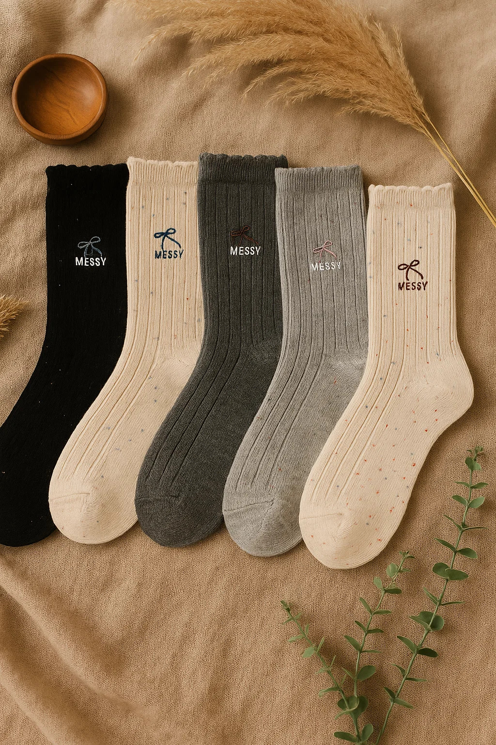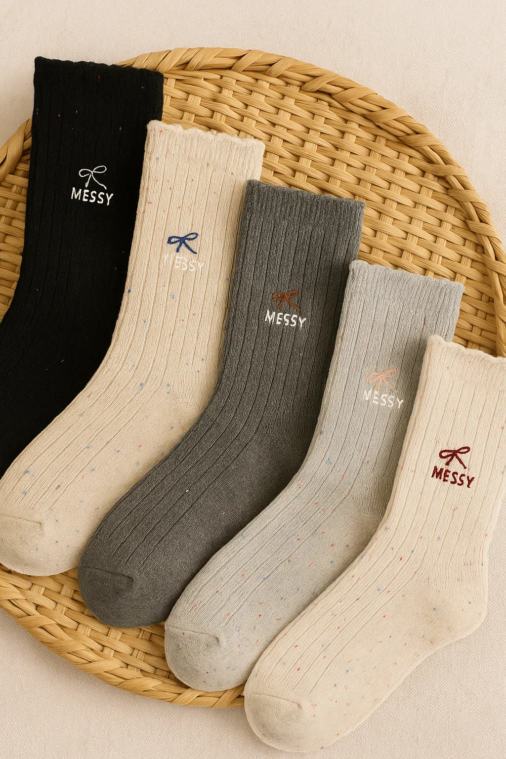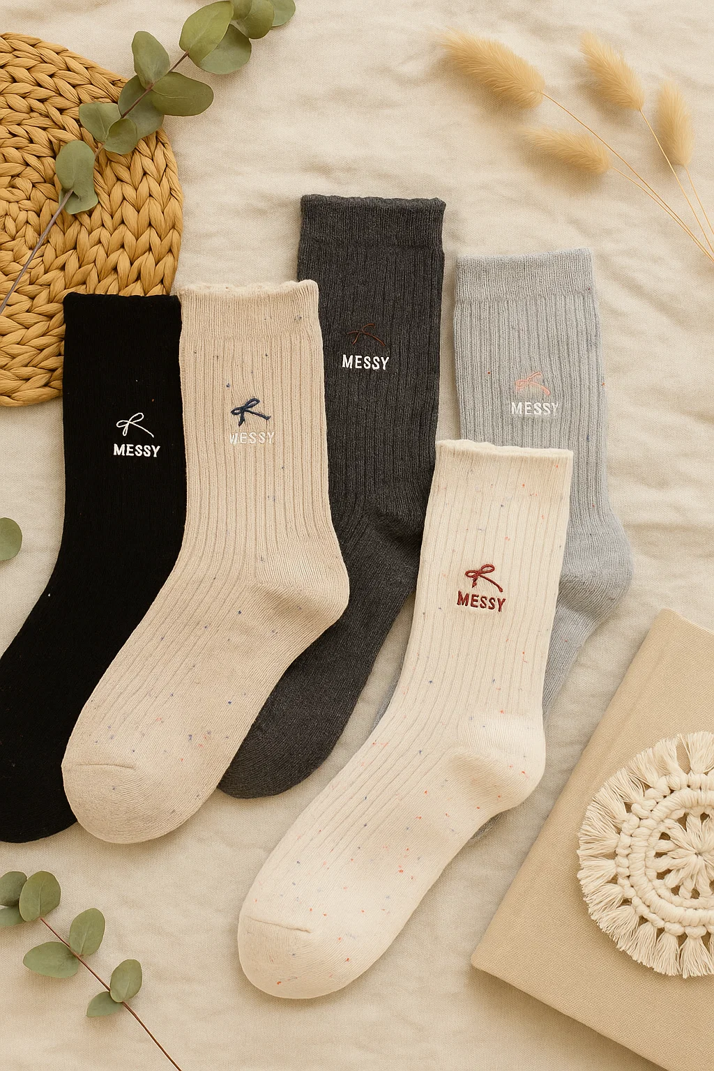 Dodaj odrobiny uroku do codziennych stylizacji! Skarpetki bawełniane Messy łączą wygodę, naturalny materiał i subtelne detale, które robią różnicę. Wykonane z miękkiej, oddychającej bawełny, są przyjemne dla skóry i komfortowe przez cały dzień.