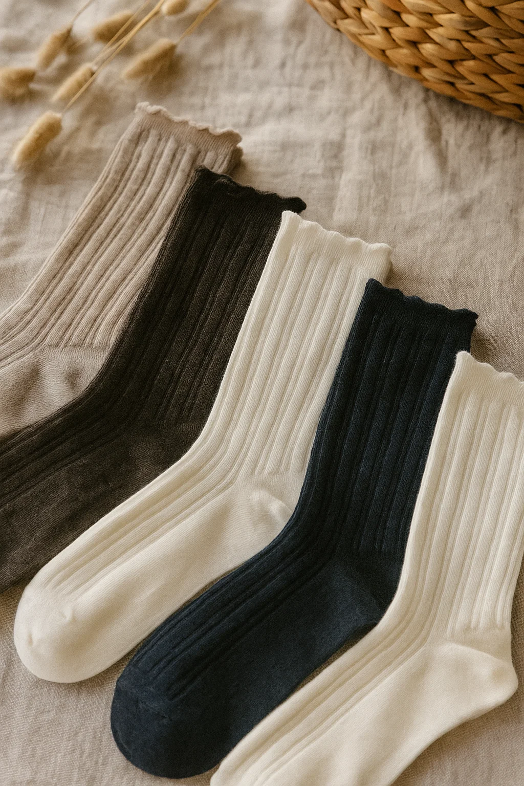 Odkryj wygodę, której nie będziesz chciała się pozbyć! Nasze modne skarpetki z szerokim, elastycznym ściągaczem z falbanką łączą w sobie komfort i modny wygląd – świetnie dopełnią zarówno codzienne stylizacje, jak i ulubione buty.
