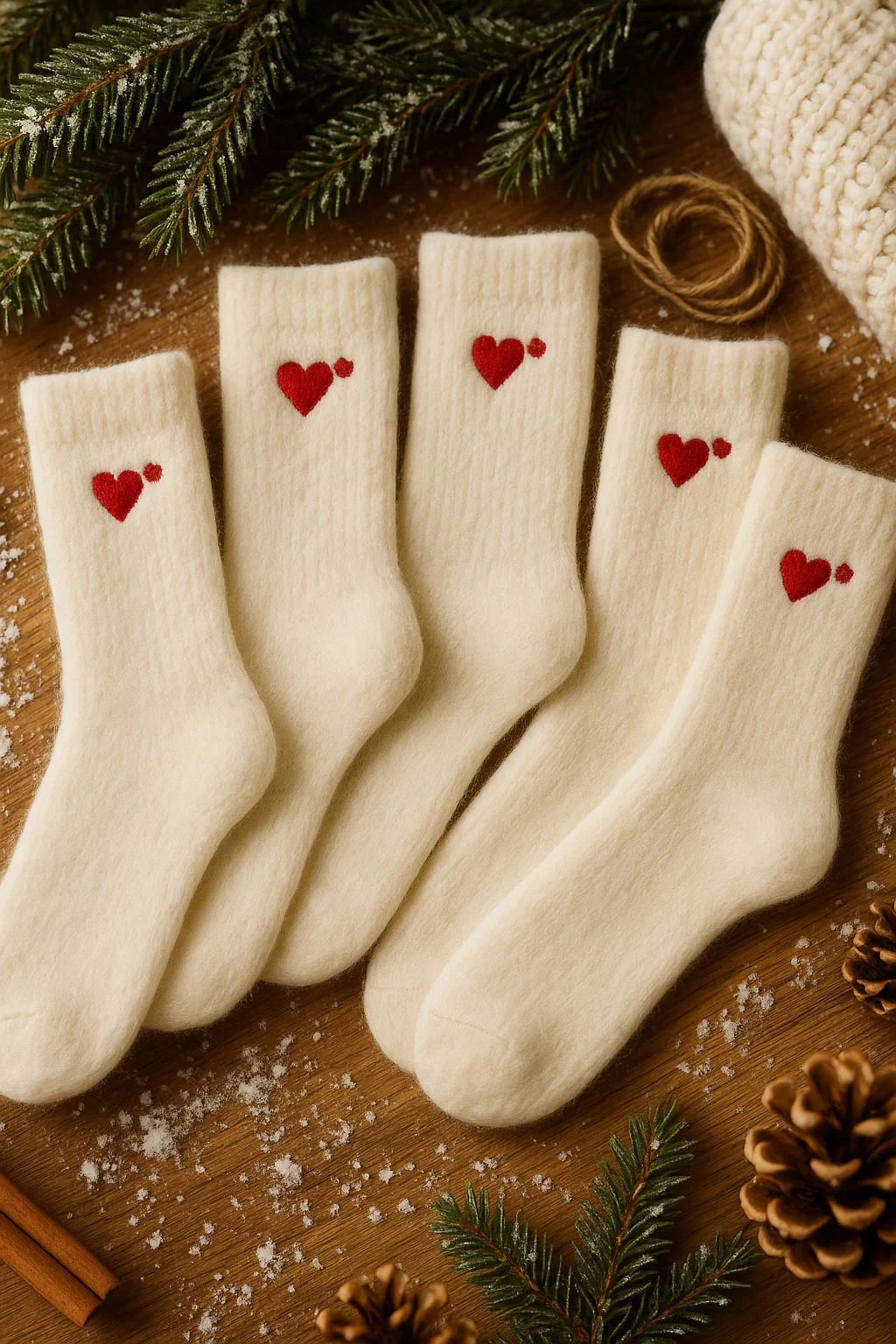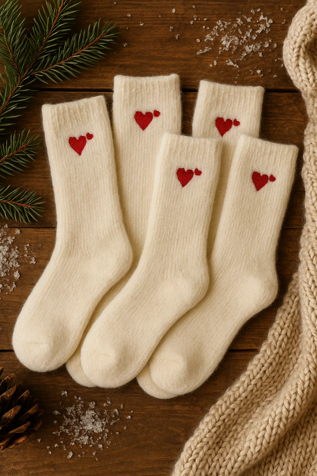 • Skarpety damskie wełniane MERINO w serduszka pięć par, świetne na prezent, jesień zimę, święta. Bardzo ciepłe i przewiewne - oddychające