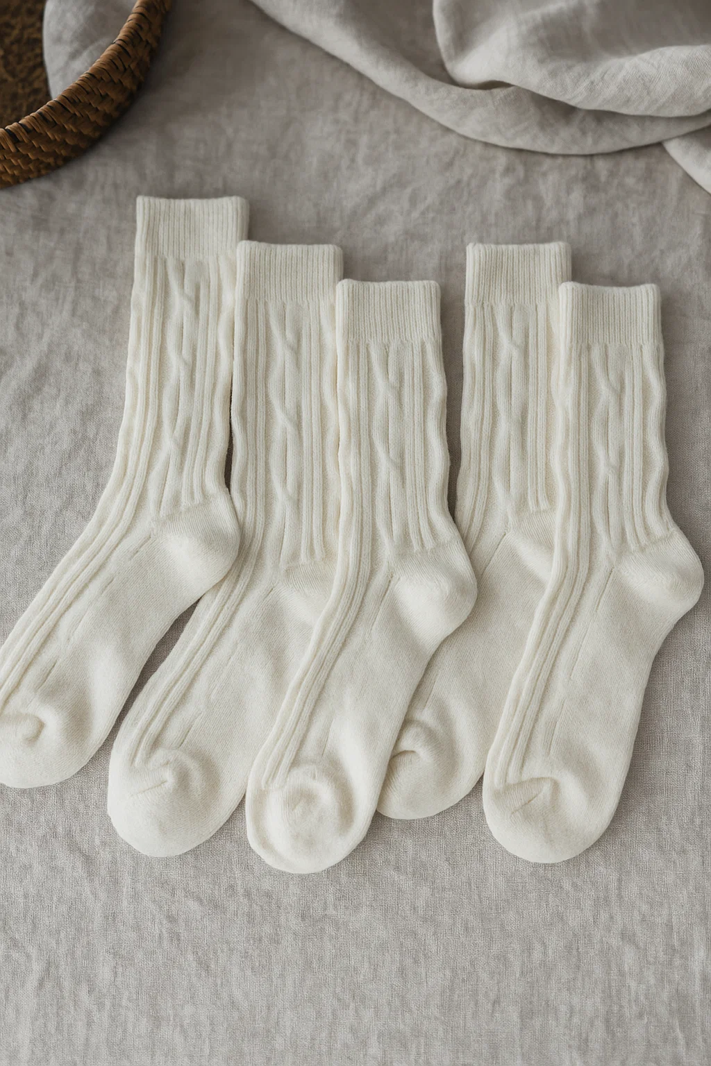 5-pak Skarpetki długie białe ecru z wełny merynosa wzór warkocz 39-42