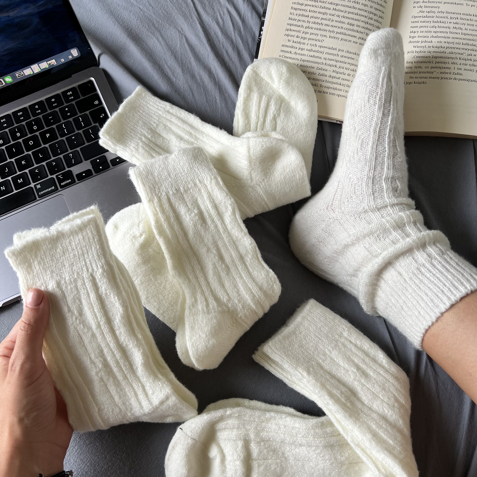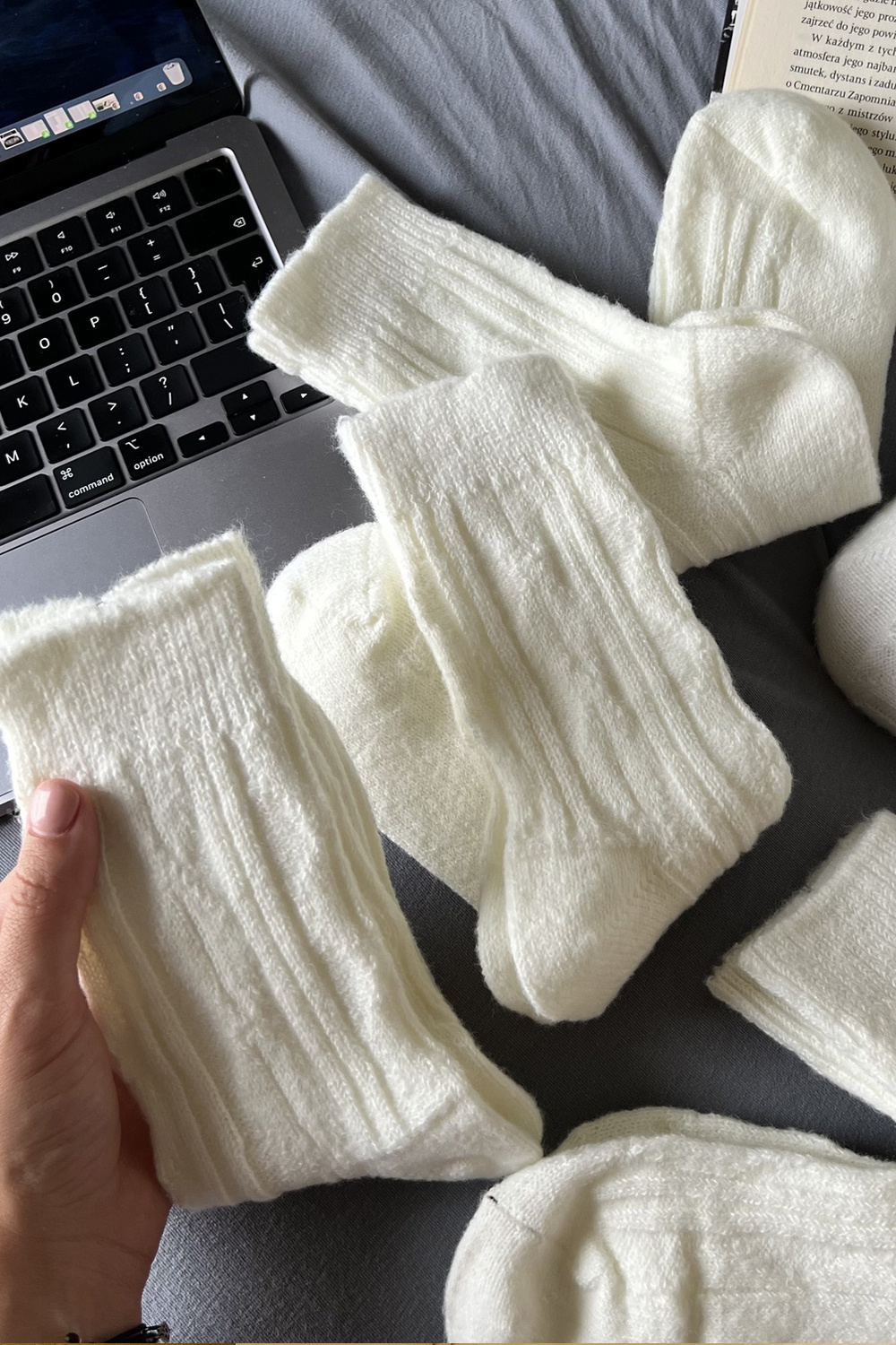 Najcieplejsze i najmilsze skarpetki na zimę, ale też jesienne chłodne wieczory! To za sprawą wyjątkowej wełny z Merynosów, której włókna są cieńsze niż w tradycyjnej wełnie. Dzięki temu skarpetki nie gryzą i są bardzo miłe w dotyku.