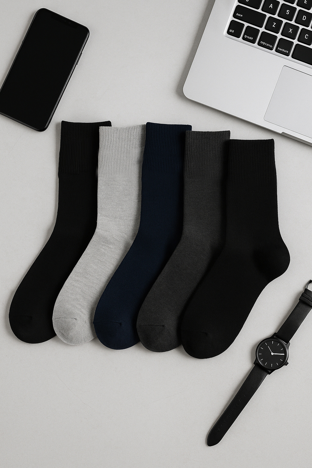 • Zestaw zawiera 5 par skarpet w neutralnych kolorach (czarny, granatowy, szary, ciemny szary)