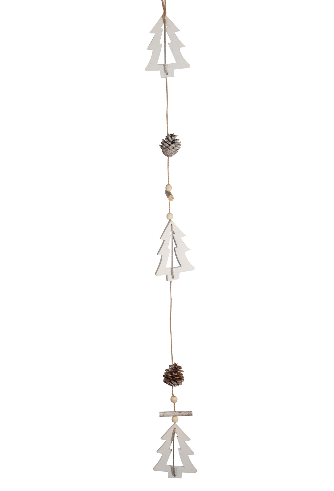 - Zawieszka świąteczna z choinkami i szyszkami, wykonana z drewna, kolor biały oraz kolory naturalne