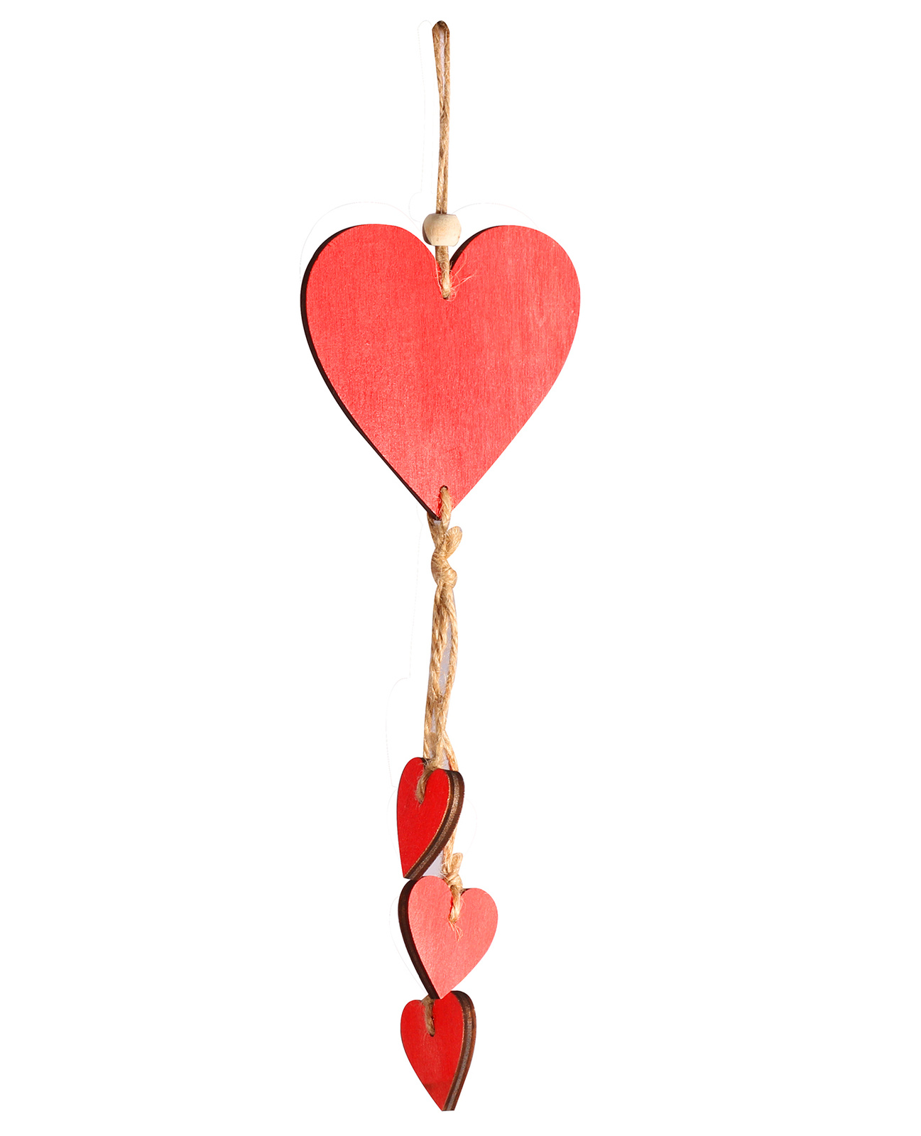 - Zawieszka świąteczna wykonana z drewna w kolorze czerwonym w kształcie czerwonych serduszek w różnych rozmiarach.