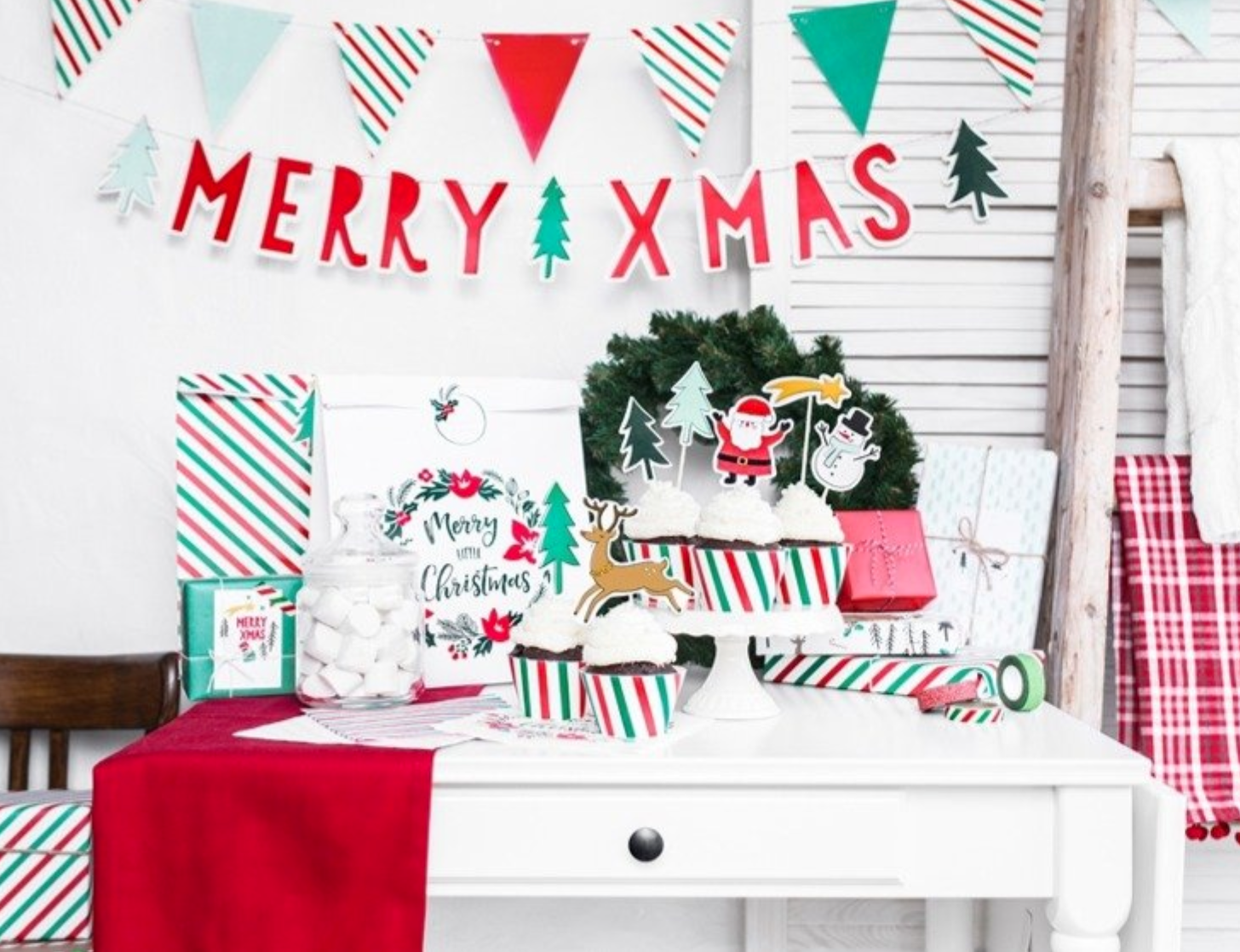 Flagietki w klasycznych kolorach świątecznych - zielonym, czerwonym i białym, tworzą wyjątkowy wzór. Girlanda jest wyjątkowo wszechstronna. Możesz ją zawiesić na ścianie, tworząc efektowną dekorację, lub przyozdobić nią drzwi wejściowe, by przywitać gości świątecznym ciepłem. Jeśli postawisz na kreatywność, możesz także zawiesić ją na choince, tworząc dodatkową warstwę ozdób.