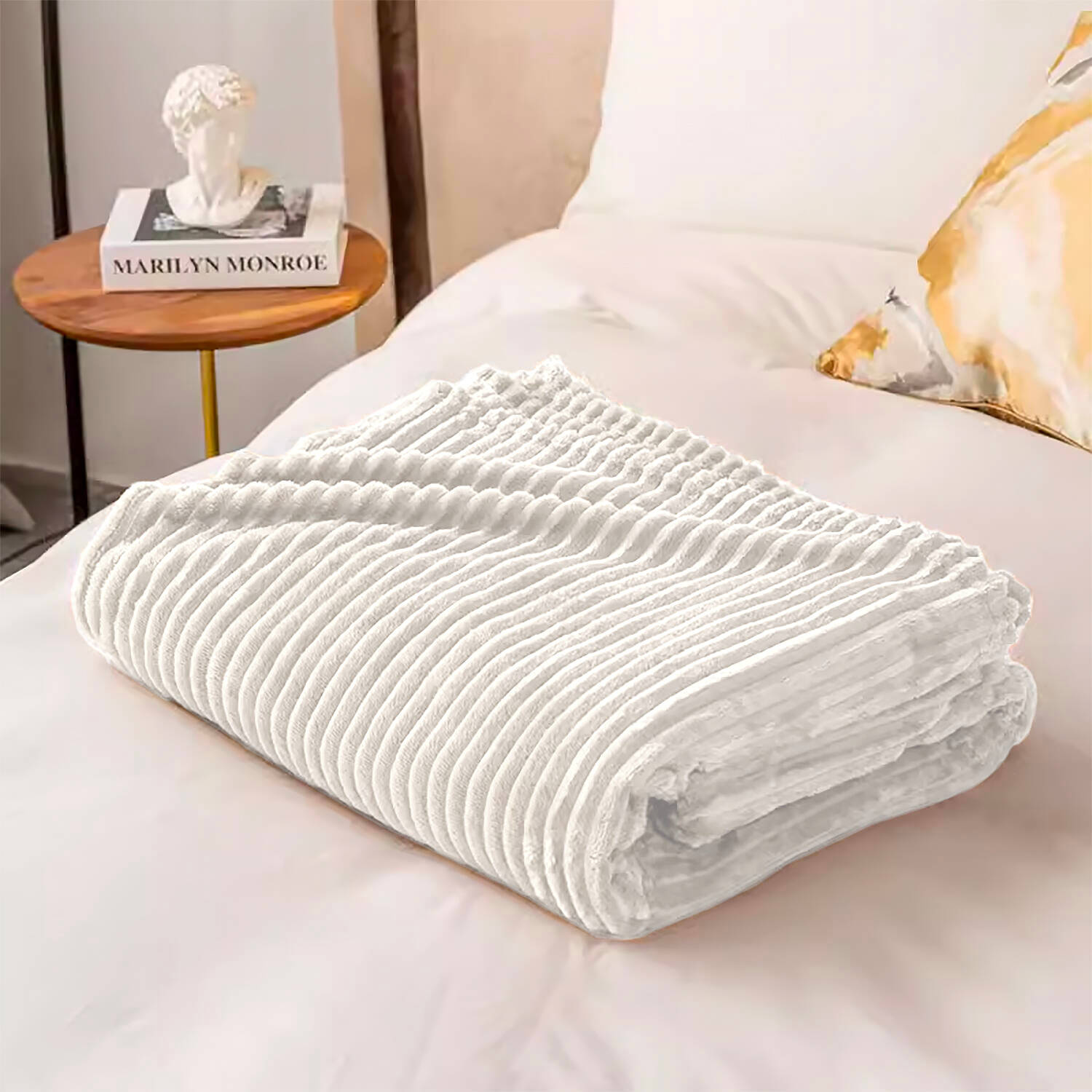 To, co wyróżnia ten koc, to precyzyjnie wytłaczany wzór pasów, który nadaje mu wyjątkowego charakteru.