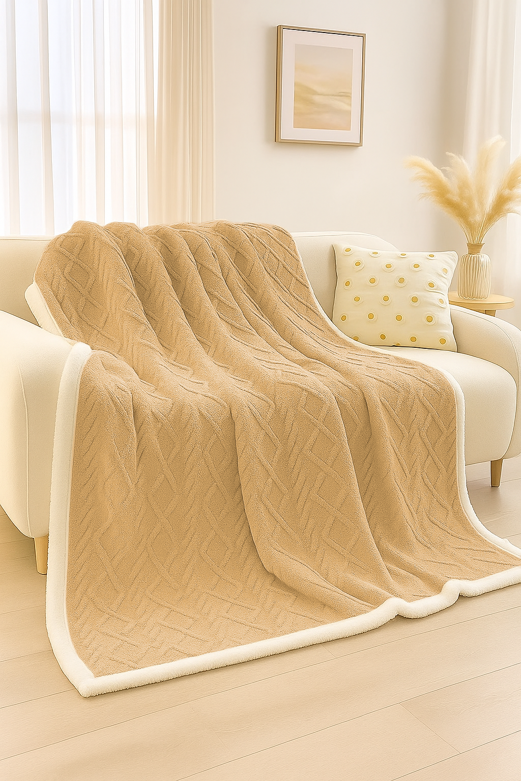 Koc pluszowy narzuta BOA 200x220 z barankiem beżowy