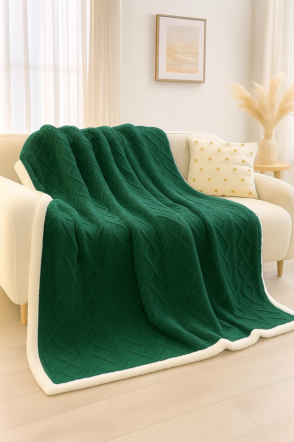 Ten wyjątkowy koc to nie tylko doskonały sposób na ogrzanie się w chłodne dni, ale także elegancki dodatek do wnętrza. Wykonany z najwyższej jakości, miękkiego materiału, koc oferuje niezrównany komfort w dotyku. Dodatkowo, warstwa baranka nadaje mu niepowtarzalną strukturę i przytulność. Jest starannie uszyty i trwały.