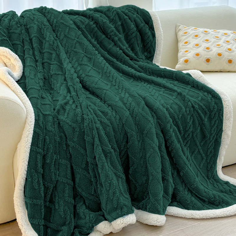Koc pluszowy narzuta BOA 200x220 z barankiem butelkowy zielony