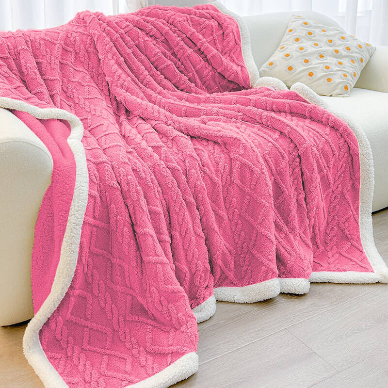 Koc pluszowy narzuta BOA 200x220 z barankiem ciemny różowy