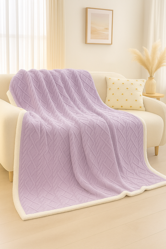 Koc pluszowy narzuta BOA 200x220 z barankiem fioletowy lawendowy