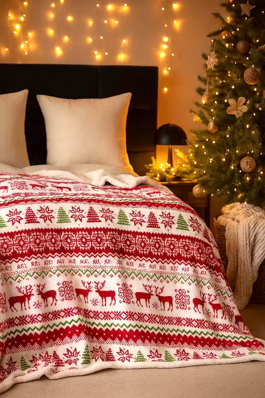 Wprowadź do swojego domu magię świąt dzięki wyjątkowemu kocykowi świątecznemu z barankiem! Ten miękki i puszysty koc, ozdobiony uroczym świątecznym wzorem, to idealny sposób na stworzenie ciepłej, przytulnej atmosfery w zimowe wieczory.