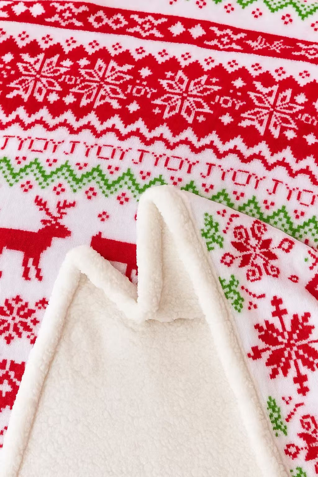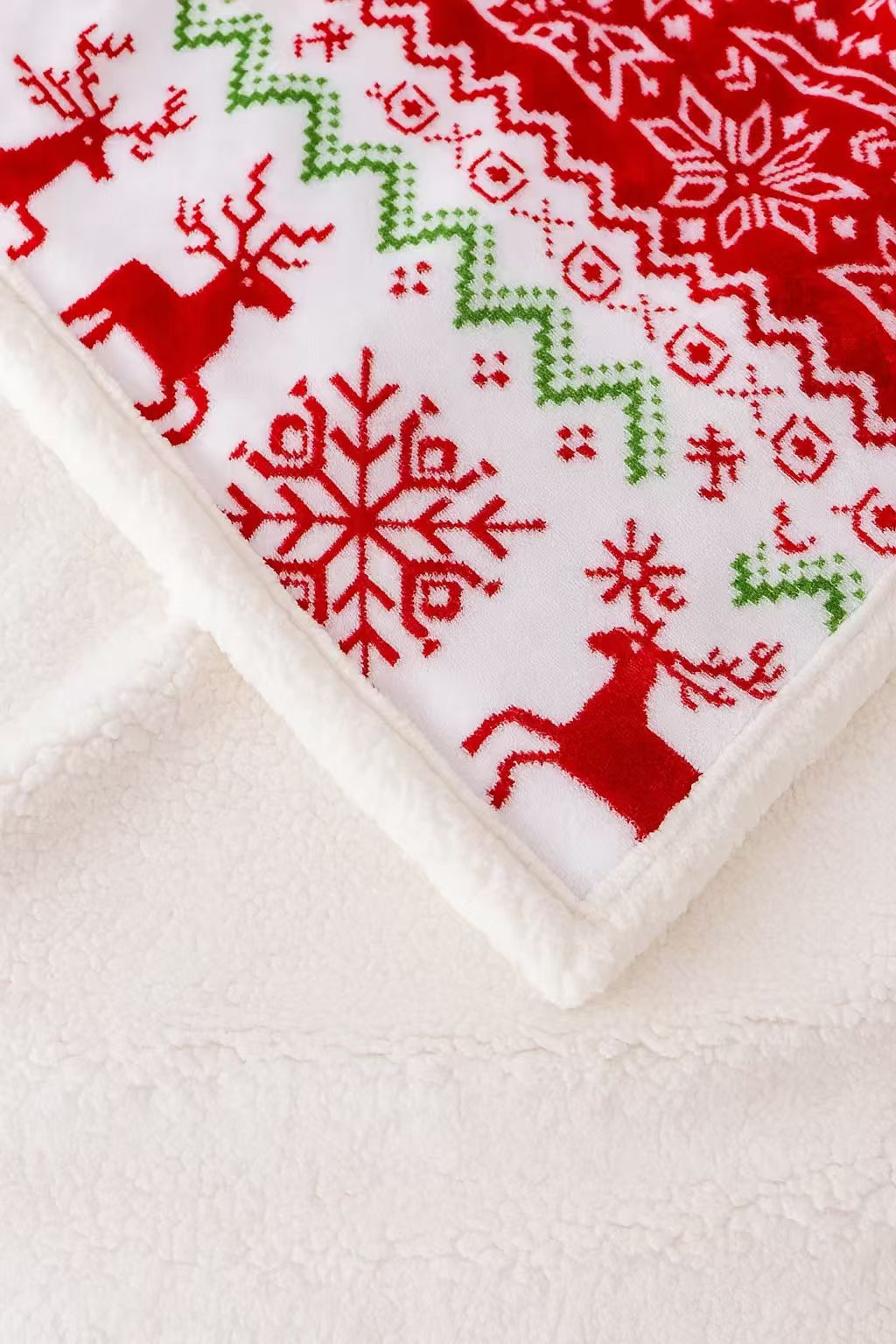 Koc pluszowy świąteczny narzuta z barankiem 160x200 biało-czerwony w różne wzory KBS-77