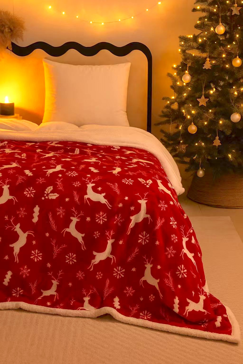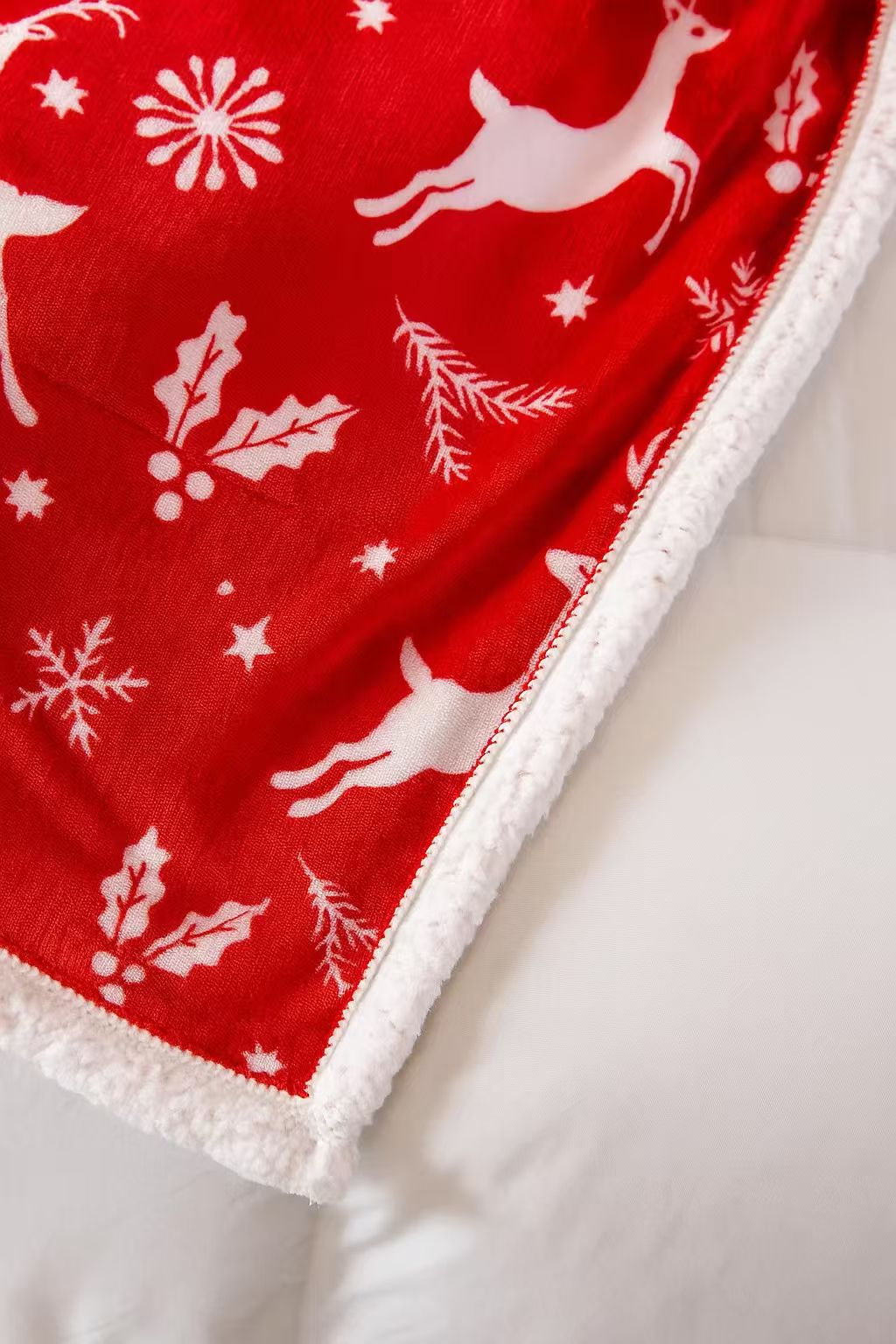Koc pluszowy świąteczny narzuta z barankiem 160x200 czerwony w renifery KBS-80