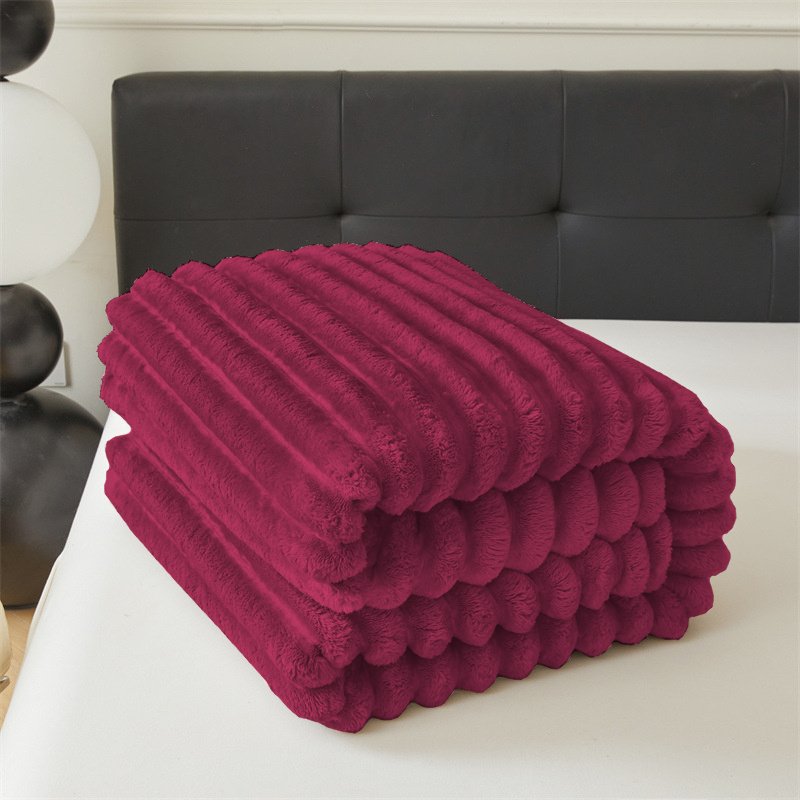 Koc pluszowy tłoczony w grube szerokie pasy 200x220 bordowy