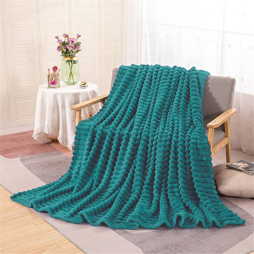 Koc pluszowy tłoczony w pasy 160x200 turkusowy