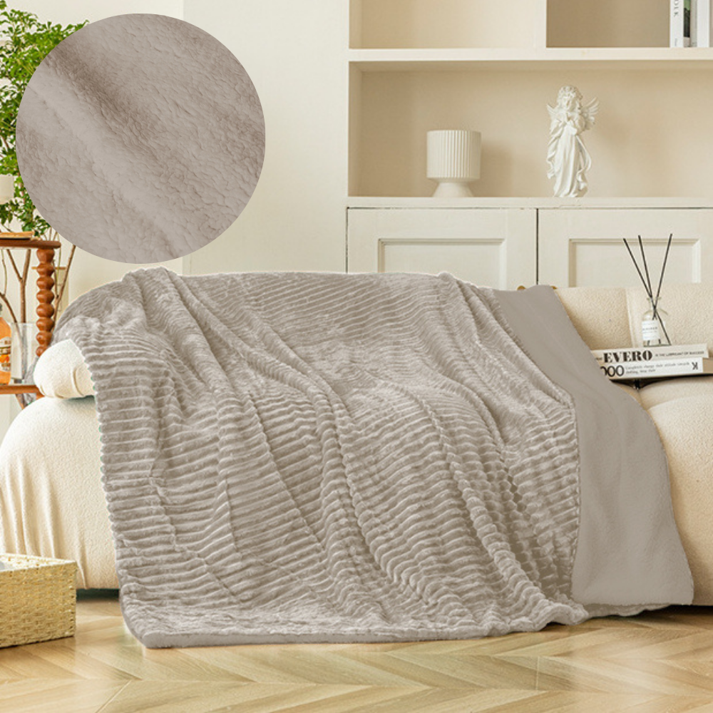 Koc pluszowy tłoczony w pasy narzuta z barankiem 200x220 chłodny beżowy