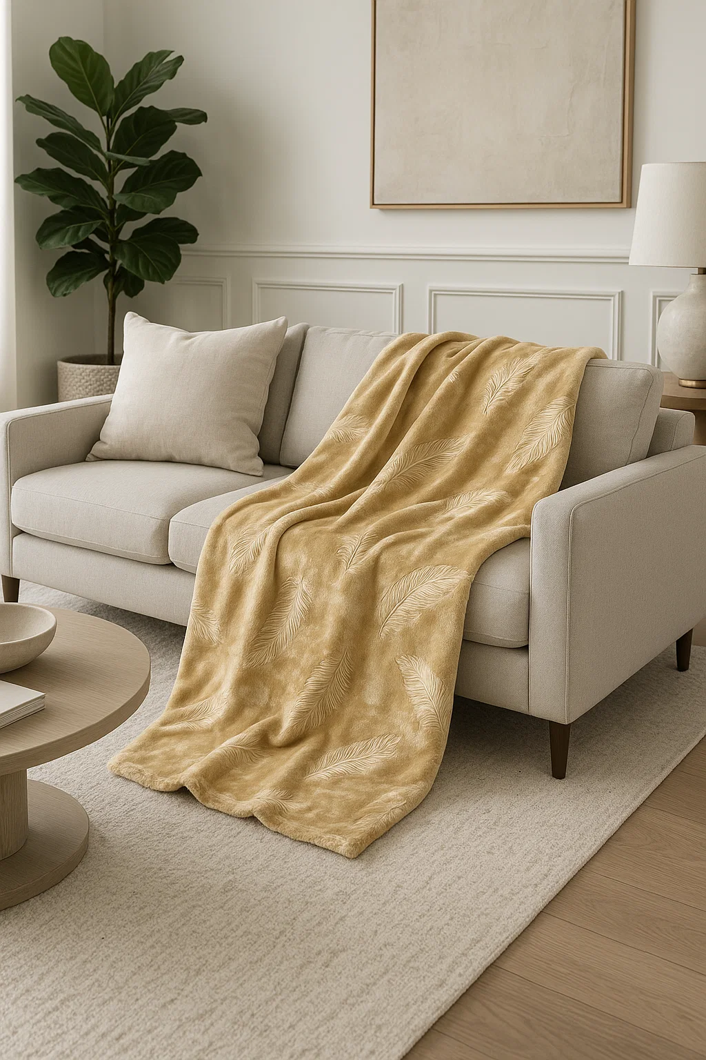 To, co wyróżnia ten koc, to precyzyjnie wytłaczany wzór, który nadaje mu wyjątkowego charakteru.