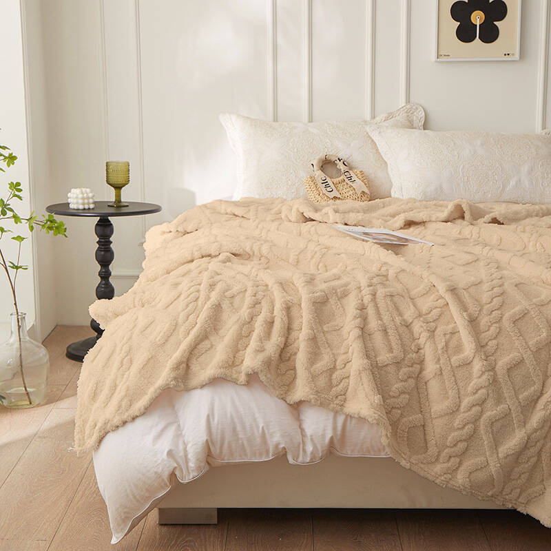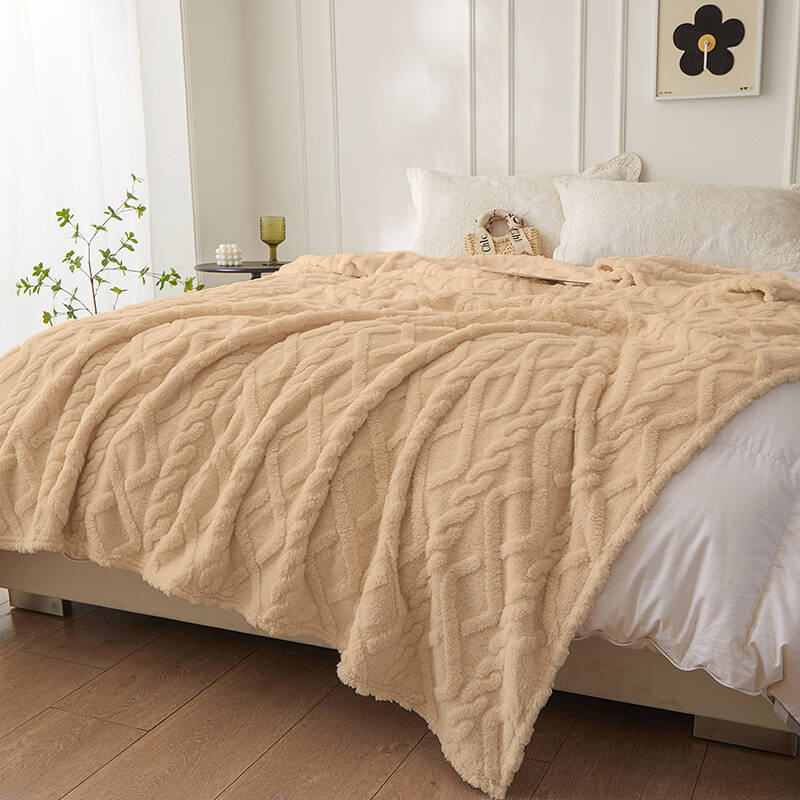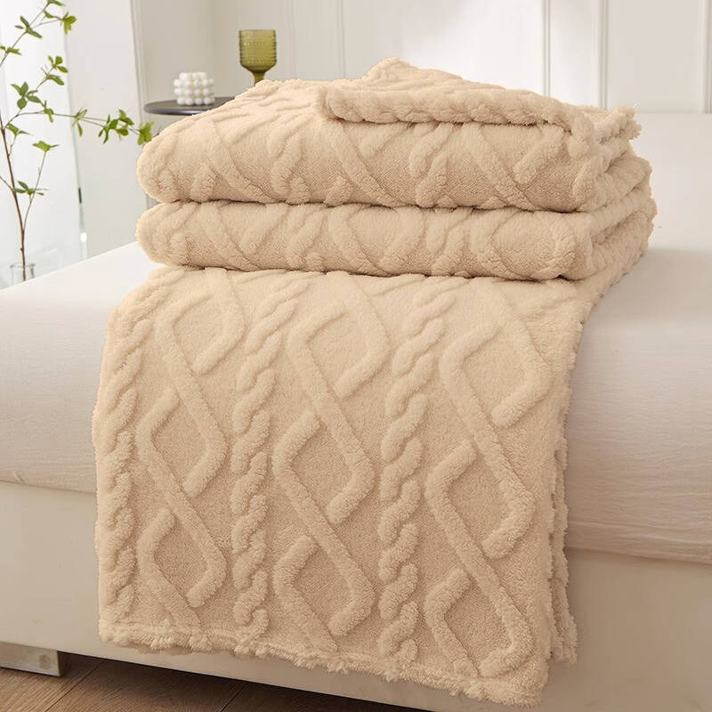 Koc pluszowy tłoczony w sweterek 3D 160x200 beżowy