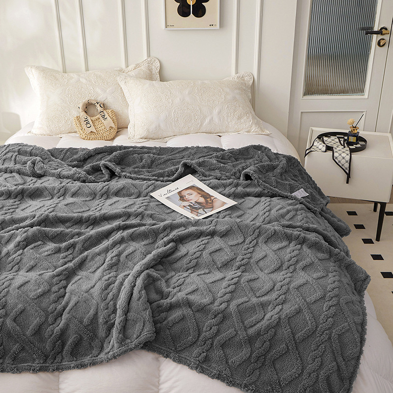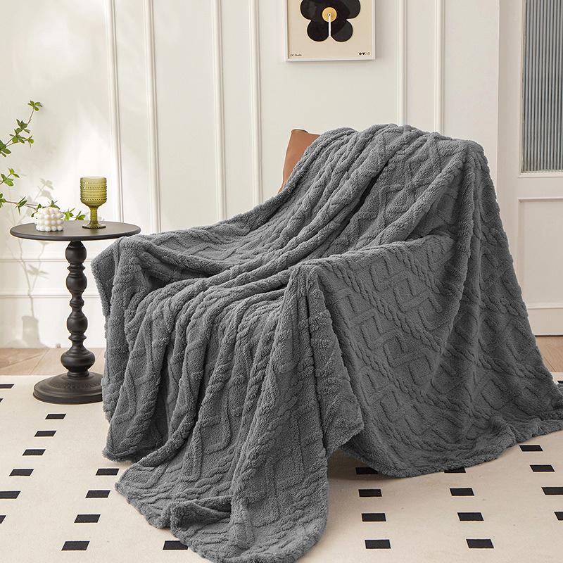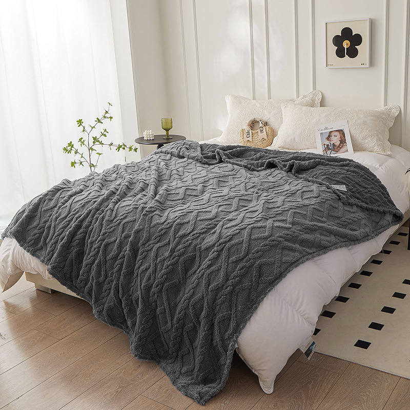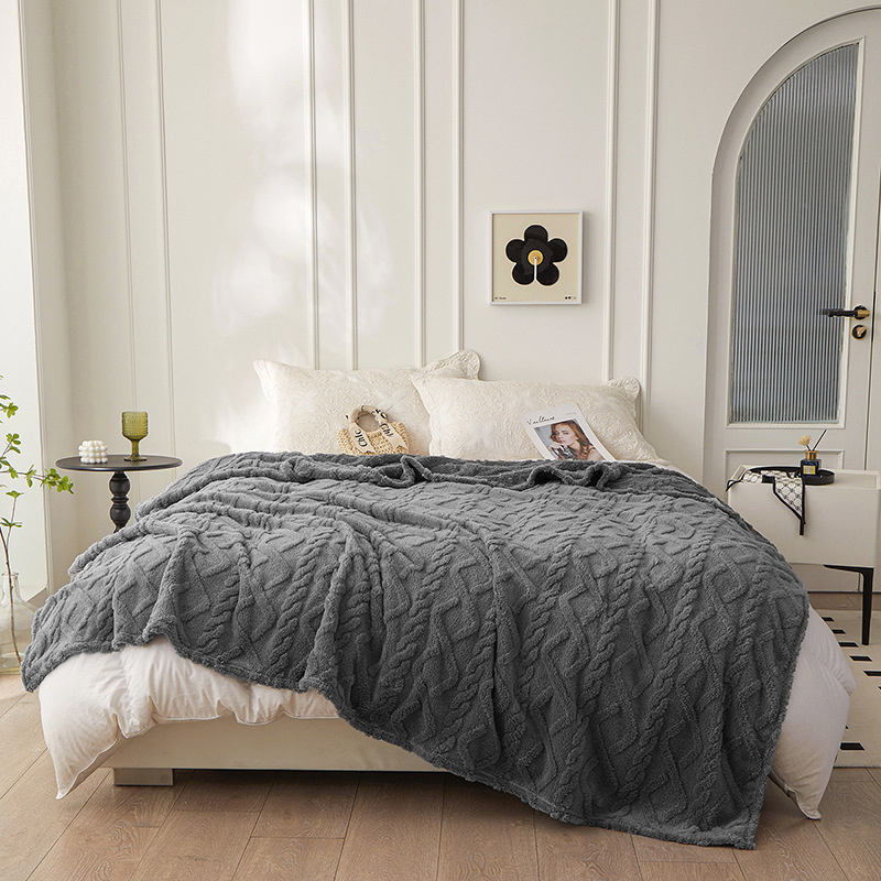 Koc pluszowy tłoczony w sweterek 3D 160x200 ciemny szary