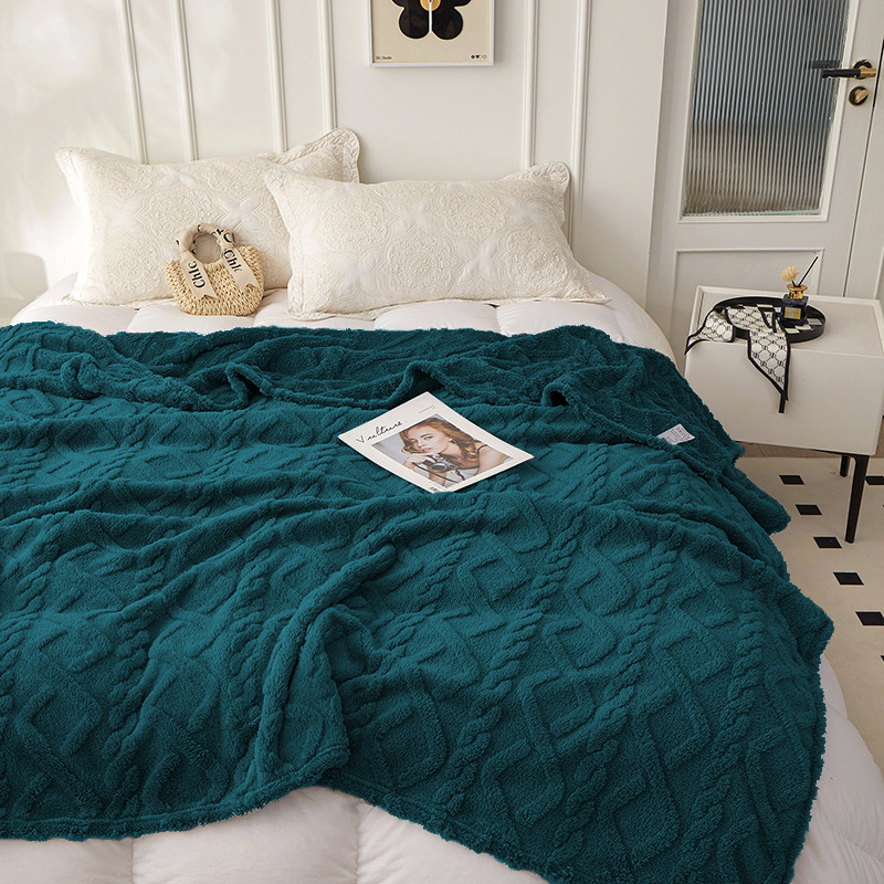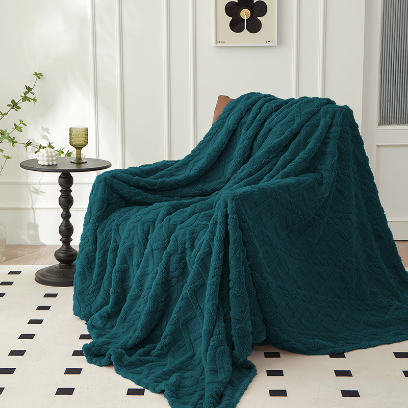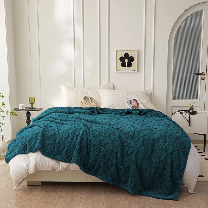 Koc pluszowy tłoczony w sweterek 3D 160x200 niebieski